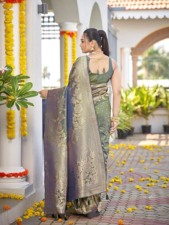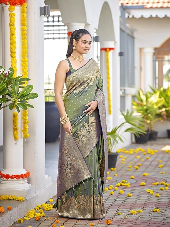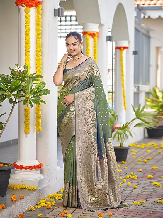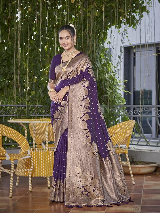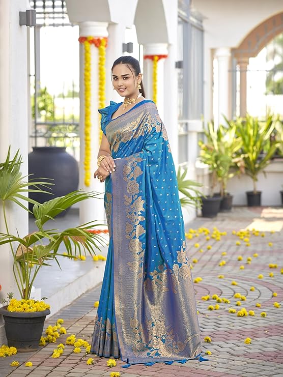 Saree comes with unstitched blouse piece,which is attached with end of the saree only. Buyer have to cut blouse part from the saree. Stiching service will not be available. There might be color variation due to screen resolution and digital photography