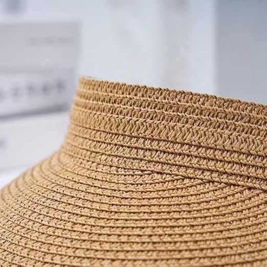 ZURATO Straw Hat Sun Cap for Women,Wide Brim Beach Hat for Women UV Protection Cap,Summer Packable Topper -UPF 50+, Korean Style Ponytail Topless Sun Visor